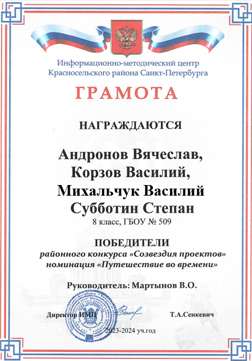 - Районный конкурс «Созвездия проектов» (районный, 2024) — победитель
